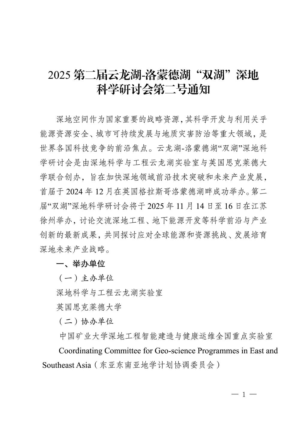下一篇:2025第二届云龙湖-洛蒙德湖“双湖”深地科学研讨会第一号通知